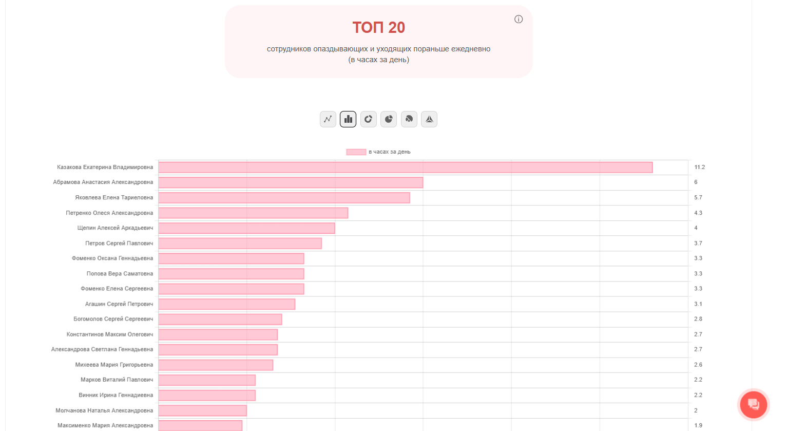 «Стахановец» автоматически фиксирует, во сколько сотрудник начал и завершил работу. Не нужно вручную сверять табели и выяснять, почему кто-то пришел в 9:15, а не в 9:00.
