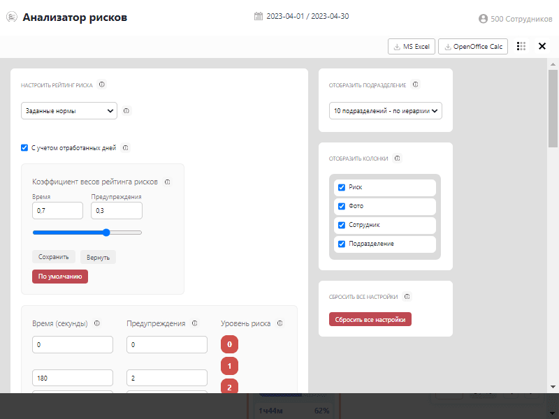 Для того, чтобы повысить качество оценки рисков поведения сотрудников, перед генерацией отчета необходимо: