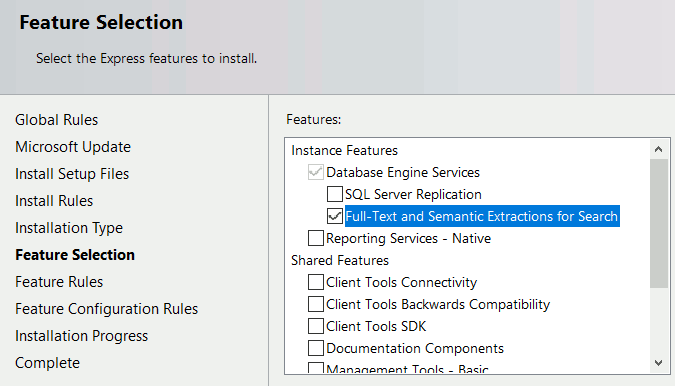 Мониторинг - Глобальный поискНа этой странице можно включить передачу данных в базу комплекса для работы отчета "Глобальный поиск".Кроме включения самого отчета также необходимо включить те типы данных, которые вам нужны будут для поиска. Также возможно нужно будет включить опцию "Передавать данные для отчета "Глобальный поиск" при смене активного окна" на странице настроек для пользователя, если нужно осуществлять поиск по заголовку окна/сайту всякий раз когда активное окно изменялось. Также может быть полезна опция "Доп. скриншоты при смене активного окна" на странице настроек. Внимание! Включение данного отчета увеличивает нагрузку на базу данных, а также увеличивает ее размер из-за формирования объемных индексов и большого кол-ва данных! Внимание! Для быстрого индексированного поиска с использованием MS SQL Server требуется установка компонента Full Text Search. По умолчанию он может быть не установлен, например для Express-версии СУБД. Необходимо скачать версию с Advanced Services и доустановить компонент. После установки компонента нужно произвести повторную конфигурацию БД комплекса в администраторской части комплекса через Мастер конфигурации БД. Если компонент не установить, то будет доступен только медленный неиндексированный поиск! Пример окна выбора для установки компонента Full Text Search: ![]() |