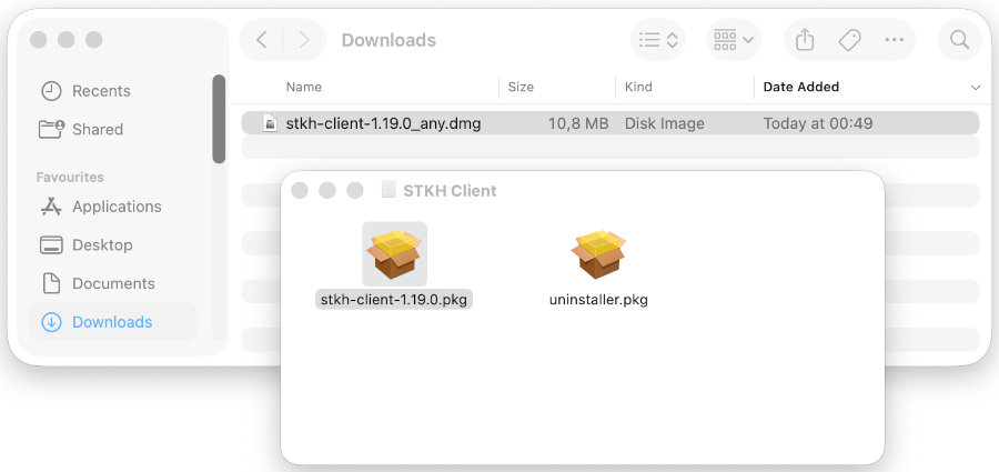 После скачивания открыть в Finder папку с загруженным файлом: Внимание! Если система выдаст предупреждение о том, что приложение потенциально опасно и не может быть открыто, то нужно кликнуть правой кнопкой мыши на .pkg-файле, а потом при открытом контекстном меню зажать клавишу "option" и уже после кликнуть на пункт меню "Open".